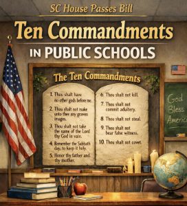 One highlight of this week was the SC House’s approval of legislation requiring all public-school classrooms, including those at state colleges, to display the Ten Commandments along with a context statement explaining their historical significance in public education.